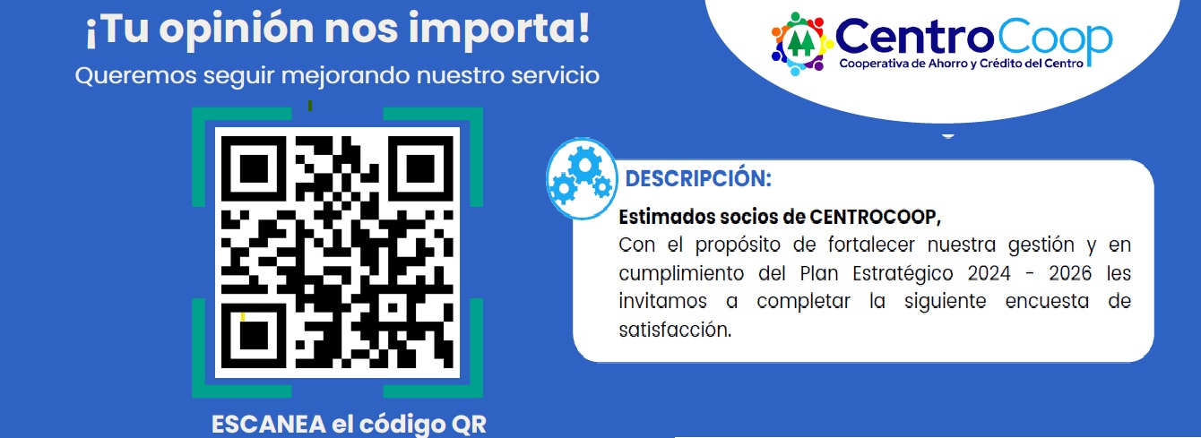 COOPAC CENTROCOOP es una cooperativa de ahorro y crédito que promueve el desarrollo financiero de sus socios, ofreciendo servicios accesibles y personalizados. Con 15 agencias a nivel nacional, está comprometida con el bienestar económico de sus socios brindando productos financieros como ahorros, créditos, seguros, giros y otros servicios.